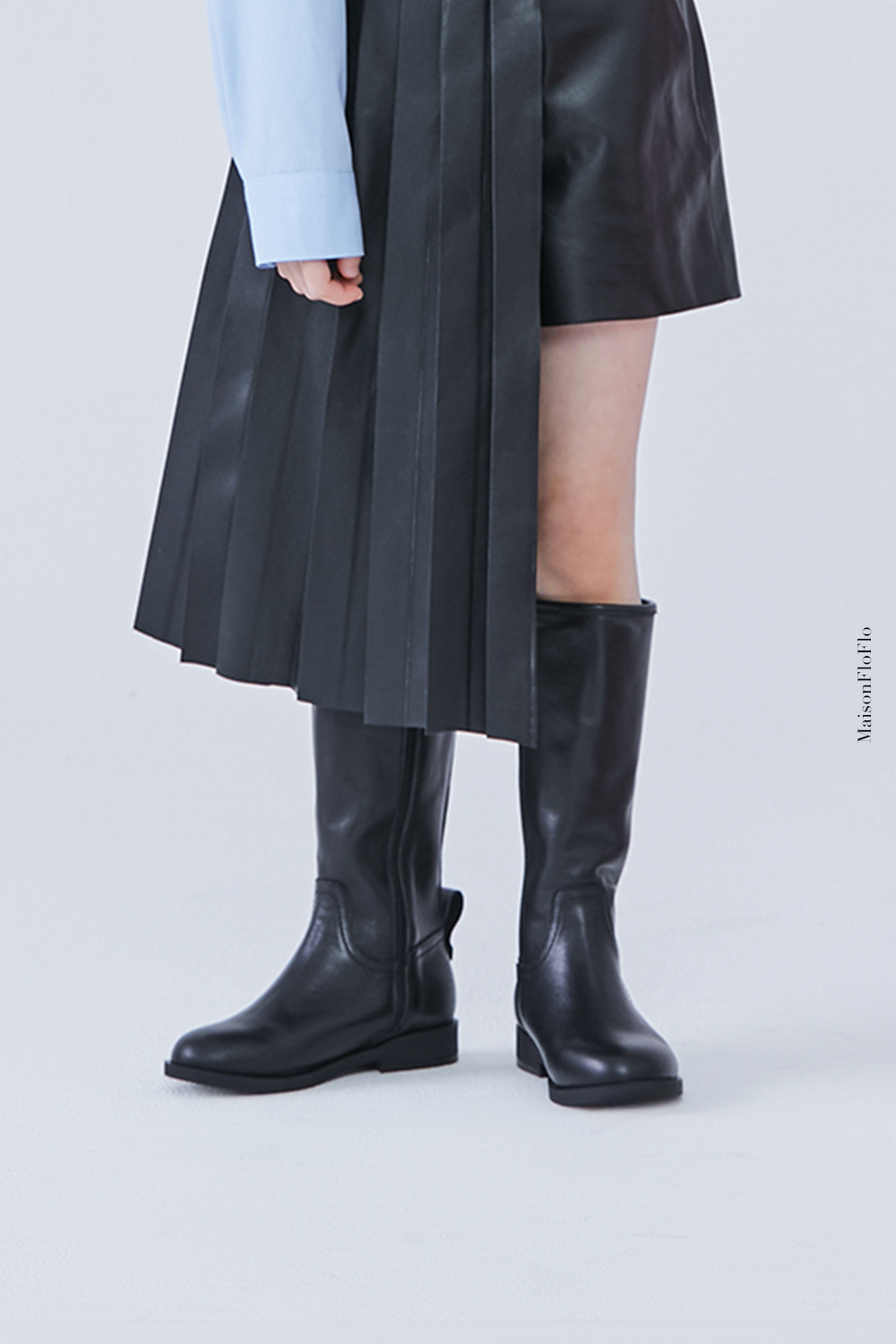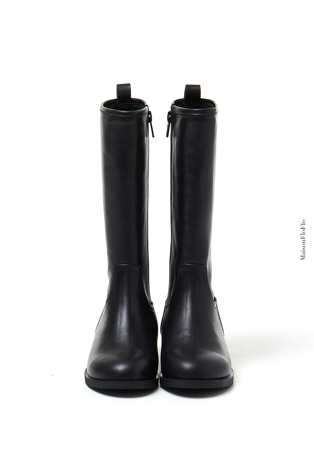 블랙 컬러가 클래식하면서도 실용적인 무릎 밑 기장의 롱부츠 입니다.