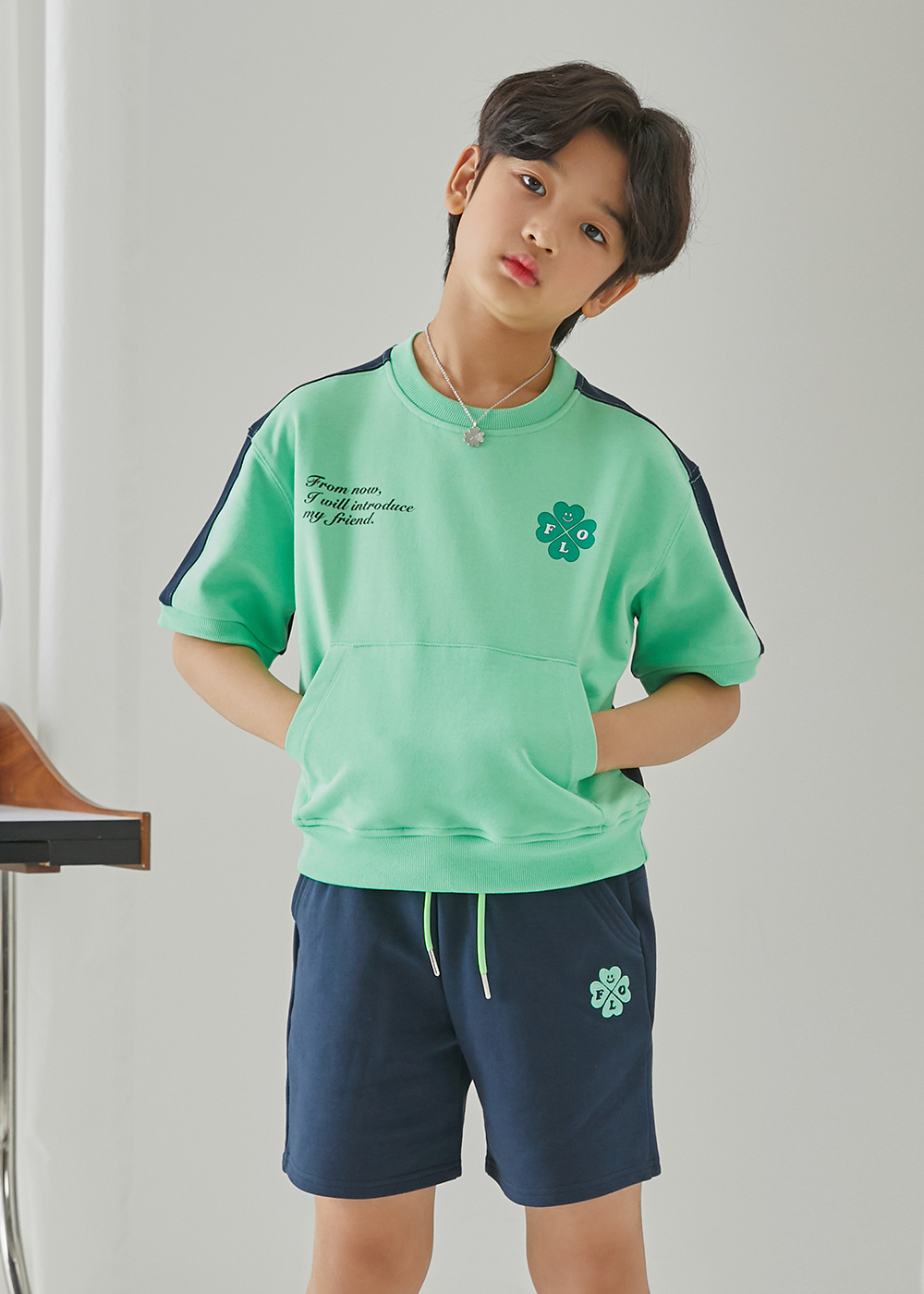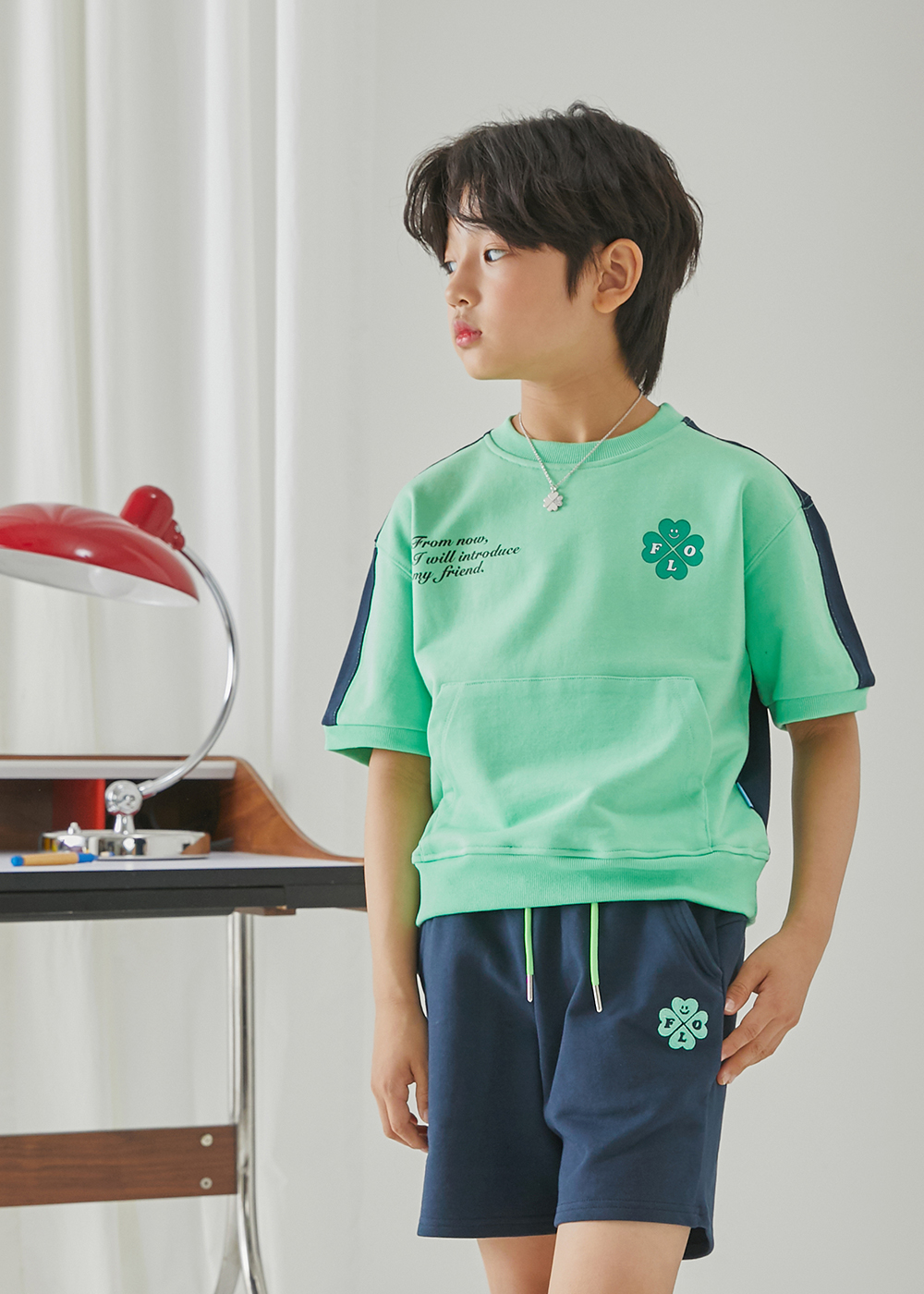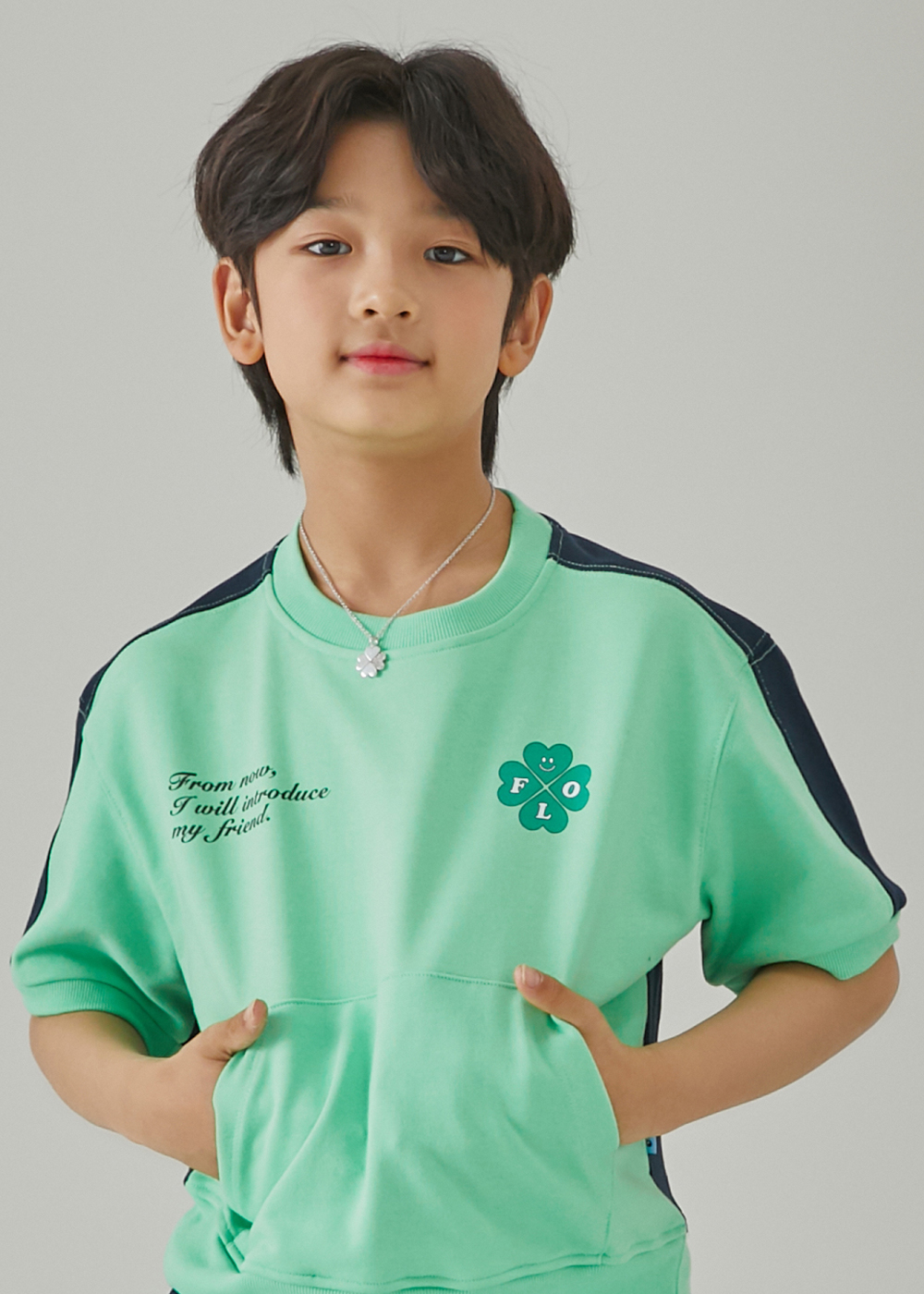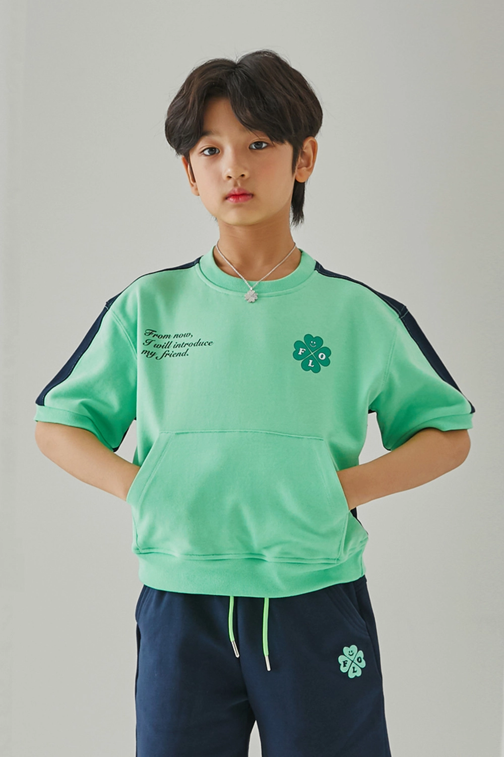 친환경 DTP 나염으로 프린팅이 된 컬러 배색의 스웻셔츠 입니다.