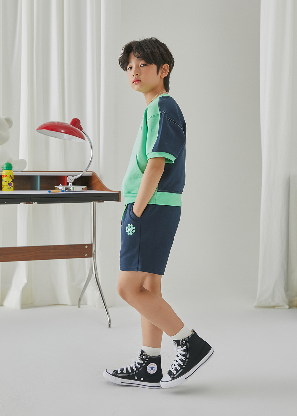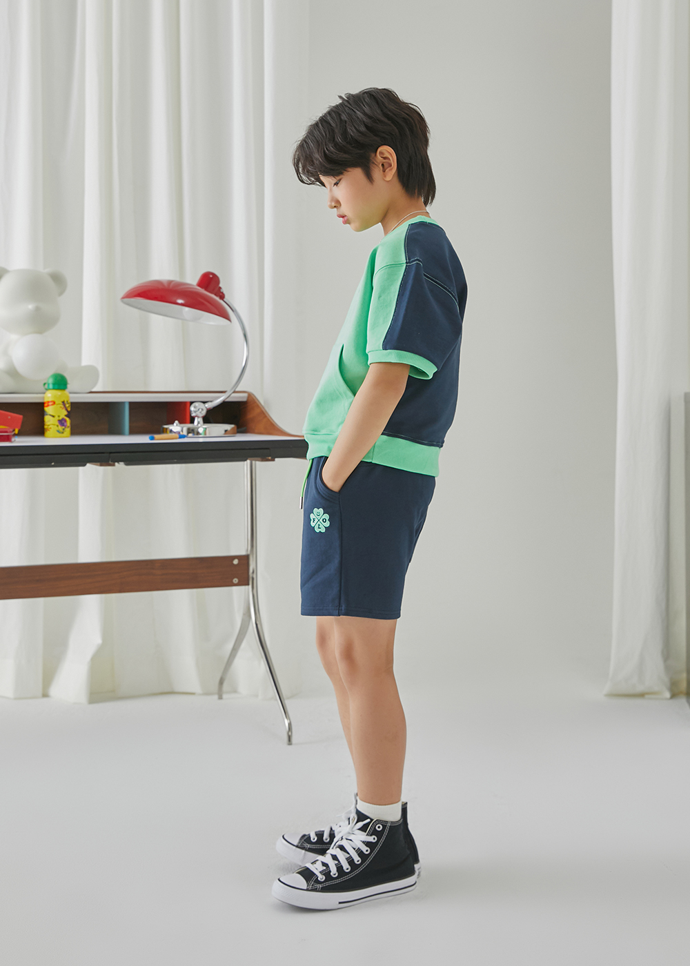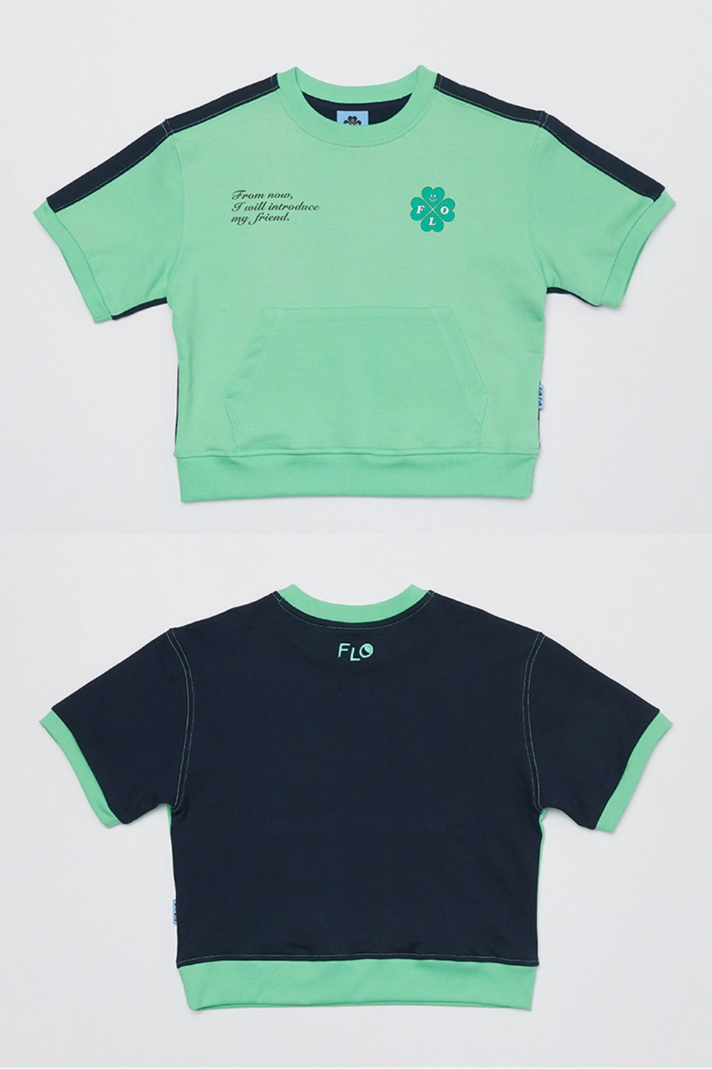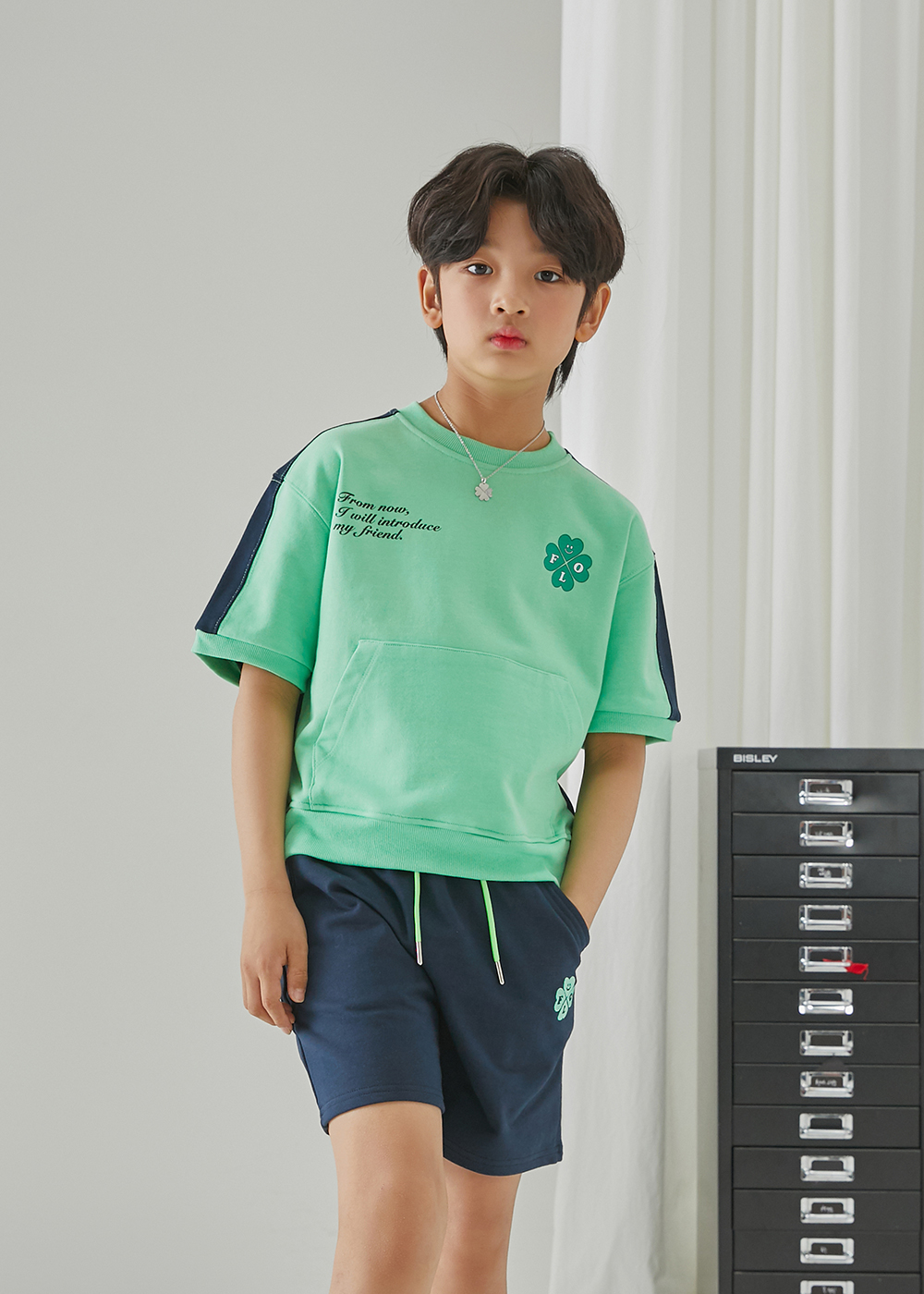 친환경 DTP 나염으로 프린팅이 된 컬러 배색의 스웻셔츠 입니다.