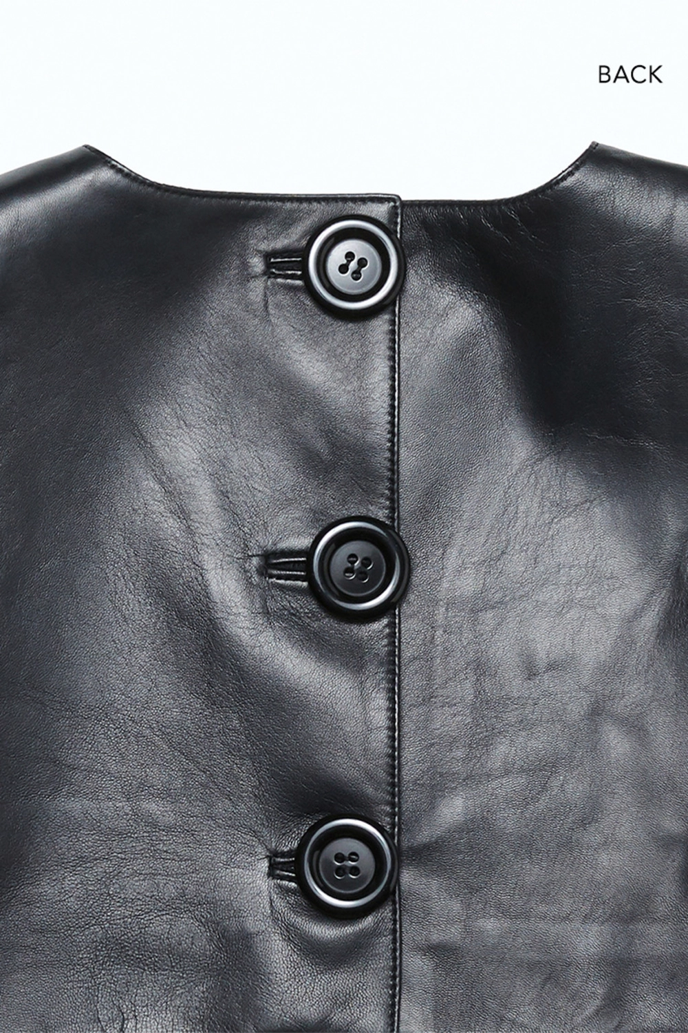 리얼 램스킨으로 만들어진 라운드 넥 베스트입니다.